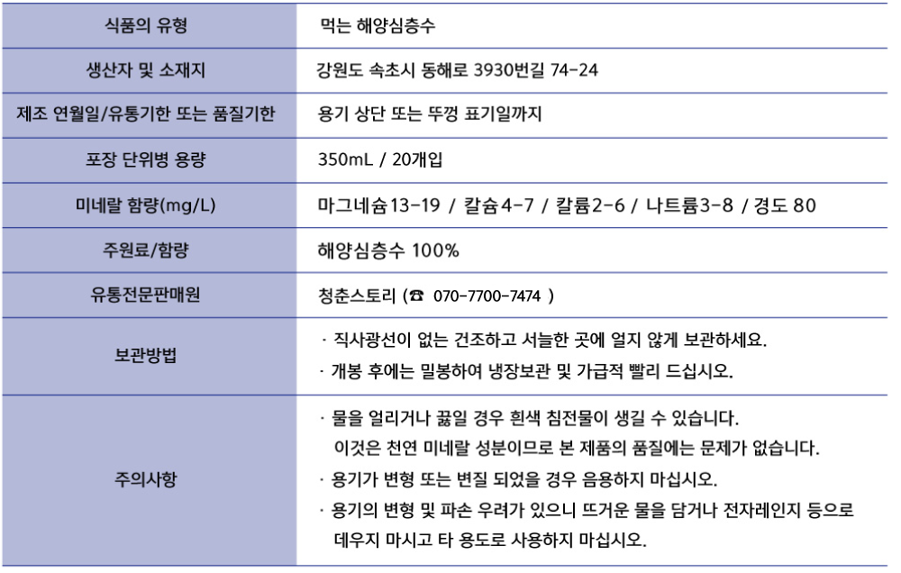 천연 미네랄이 풍부한 건강하고 신선한 생수